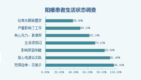 重度阳痿的表现:阴茎无勃起角度和硬度,性交活动基本停止,无性交快感。